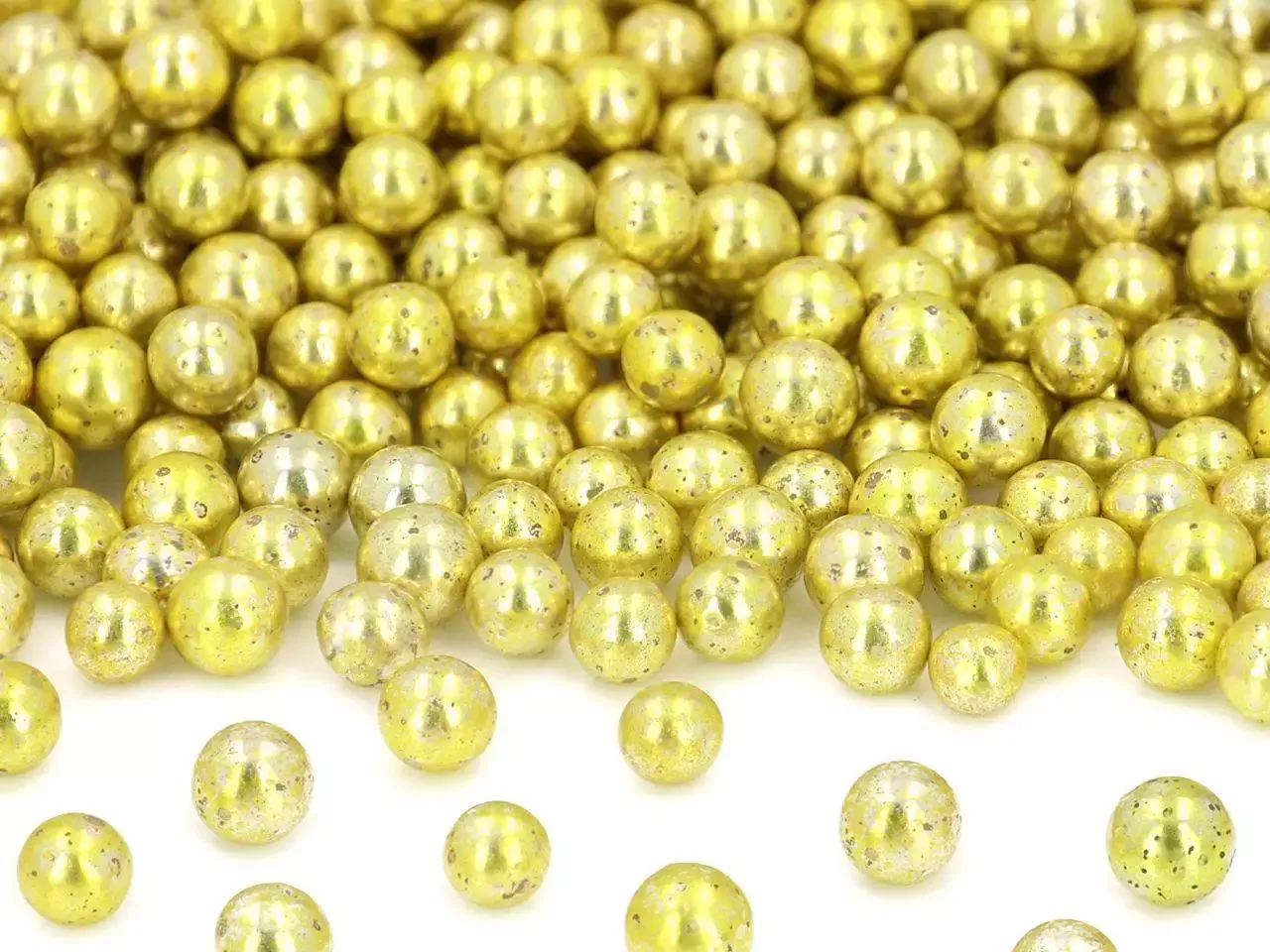 Goldene Zucker-Perlen mit weichem Puffreis-Kern. Ideal für Hochzeit, Geburtstag, Jubiläum uvm..