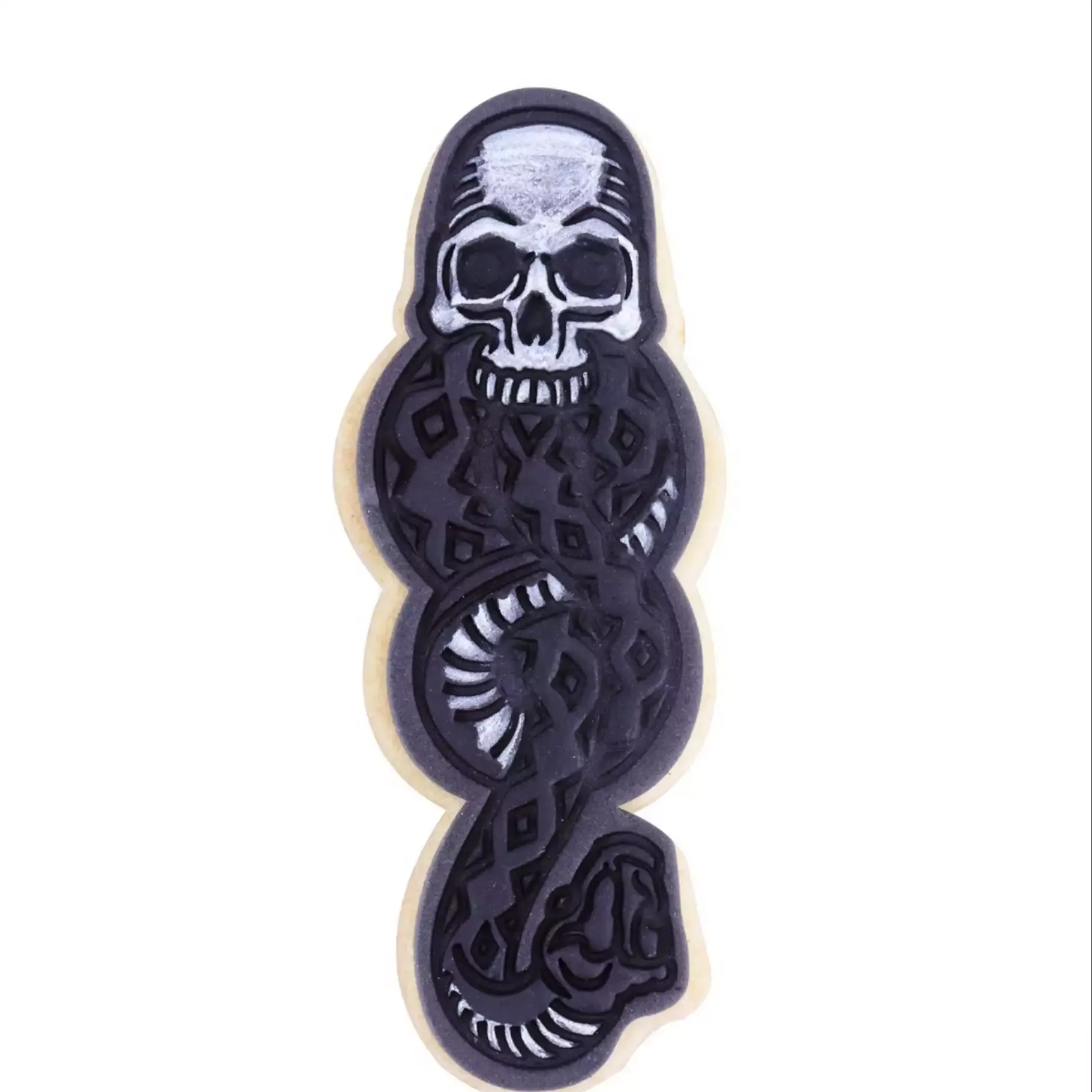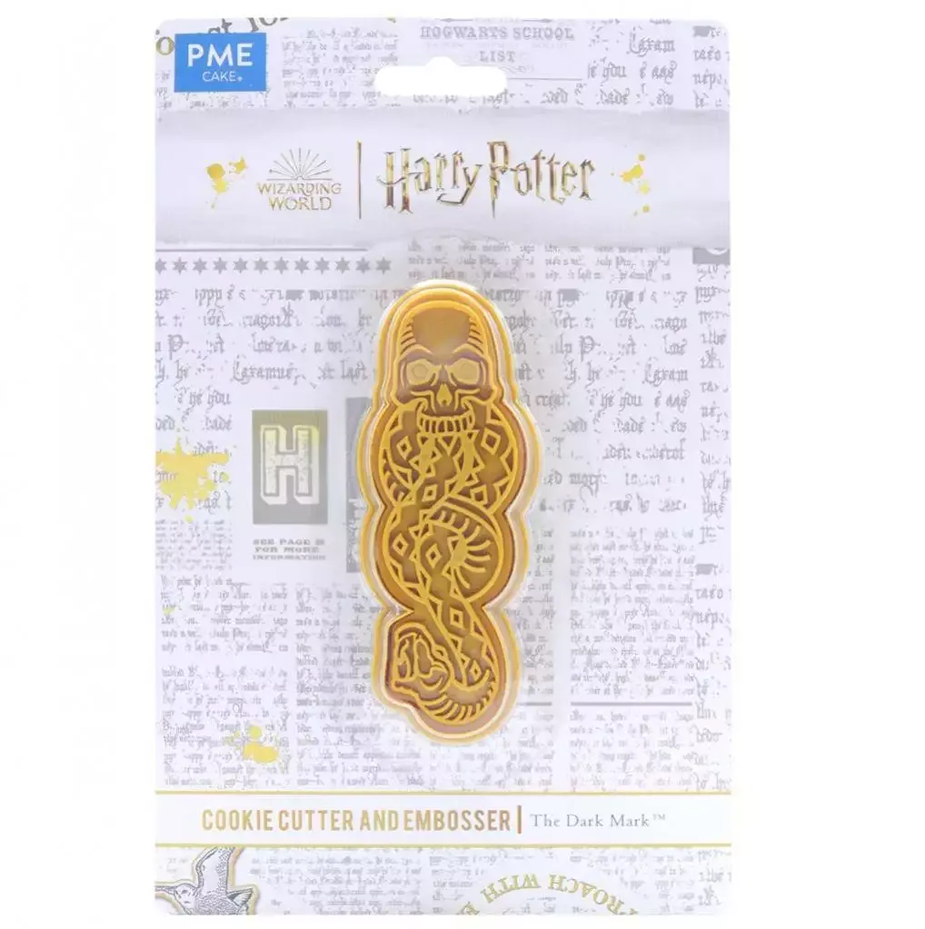 - Verwenden Sie den PME Harry Potter The Dark Mark Plätzchenausstecher & Prägemuster, um Das Dunkle Mal-förmige Kekse oder Fondantdekorationen zu gestalten.